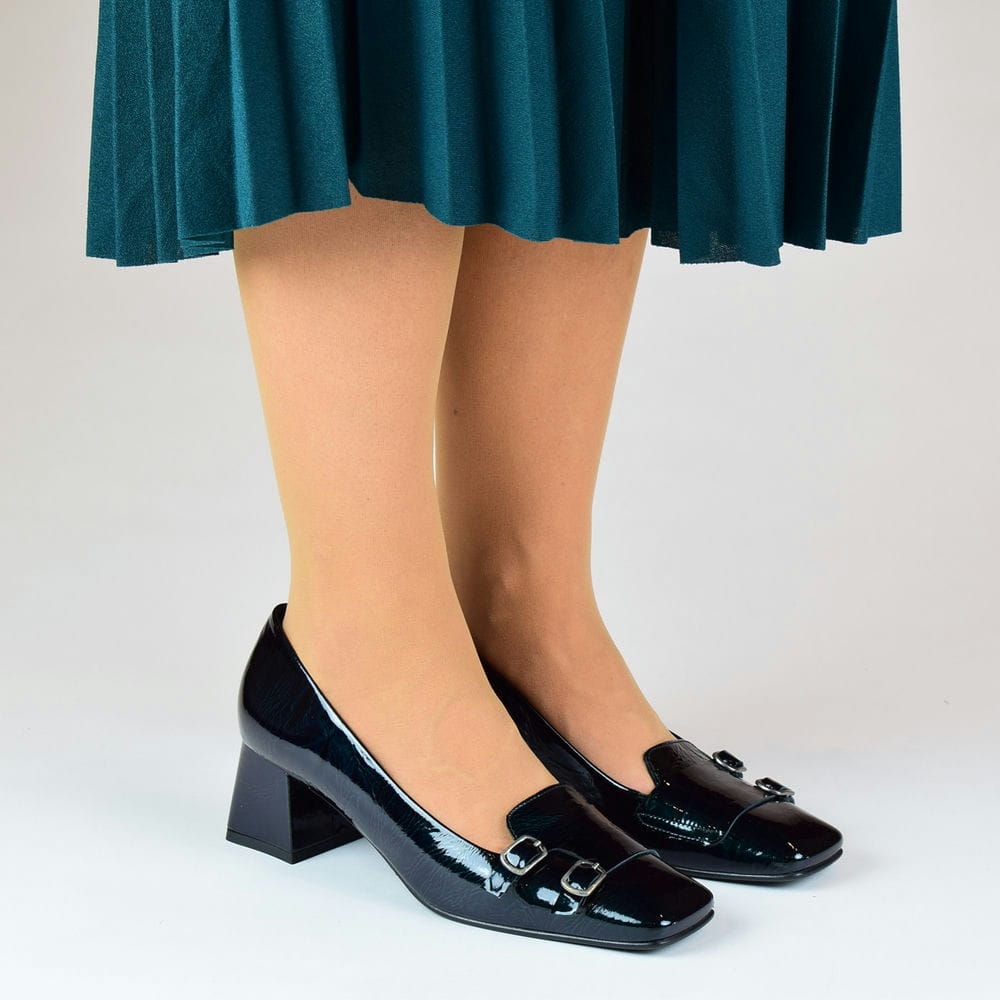 Γόβες δερμάτινες λουστρίνι σε σκούρο πράσινο με τακούνι 4,5 cm