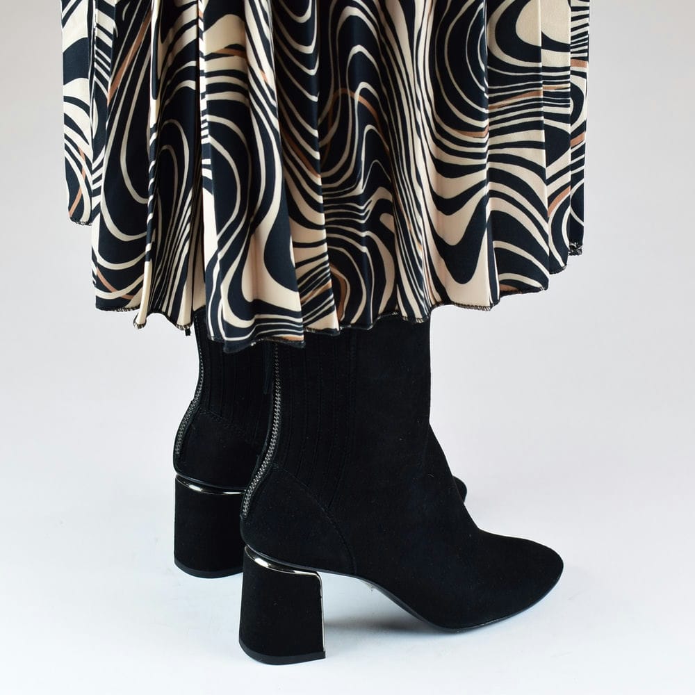 Μποτάκια δερμάτινα καστόρινα σε μαύρο με φερμουάρ πίσω και τακούνι 6 cm