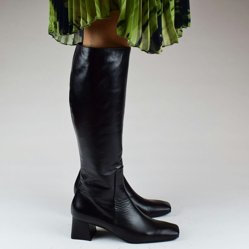 Μπότες δερμάτινες σε μαύρο με τακούνι 4 cm