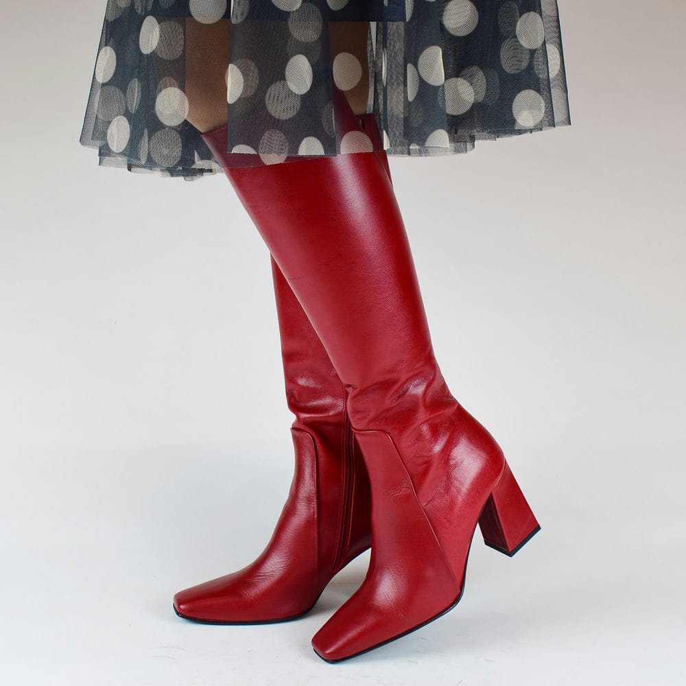 Μπότες δερμάτινες σε κόκκινο με τακούνι 7 cm