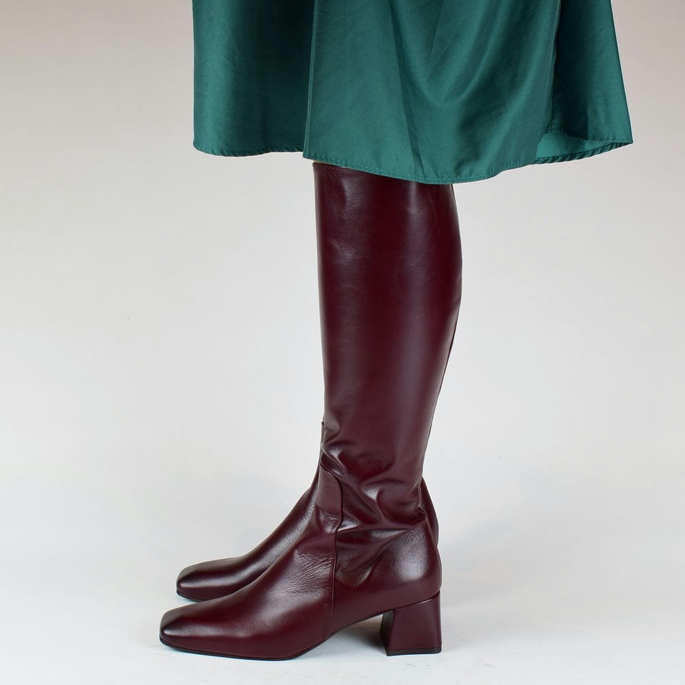Μπότες δερμάτινες μπορντό με τακούνι 4 cm