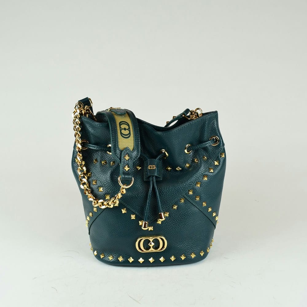 Τσάντα δερμάτινη σε πράσινο με δύο χερούλια