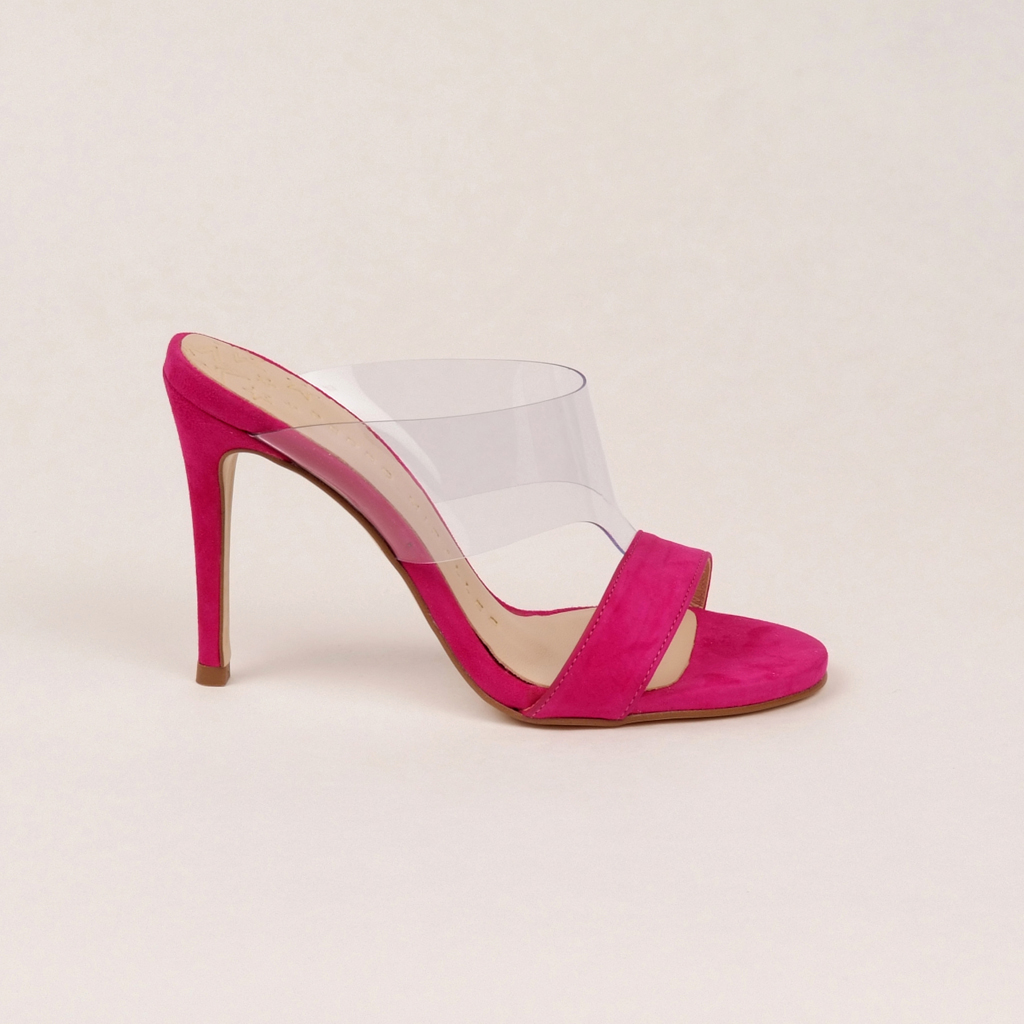 Mules από δέρμα καστόρι σε χρώμα φούξια με διαφάνειες και τακούνι 9,5 cm