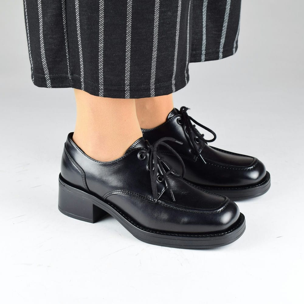 Oxfords δερμάτινα σε μαύρο με τακούνι 3,5 cm