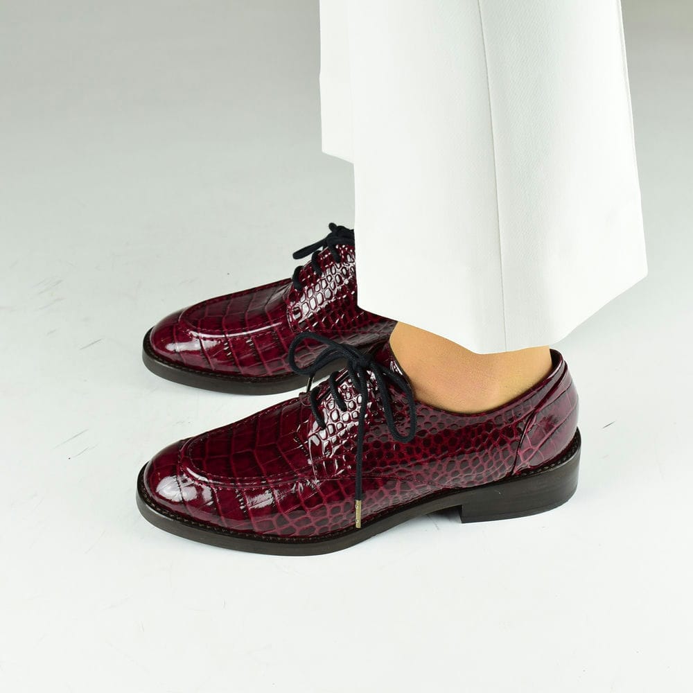 Oxfords δερμάτινα κροκό λουστρίνι σε μπορντό