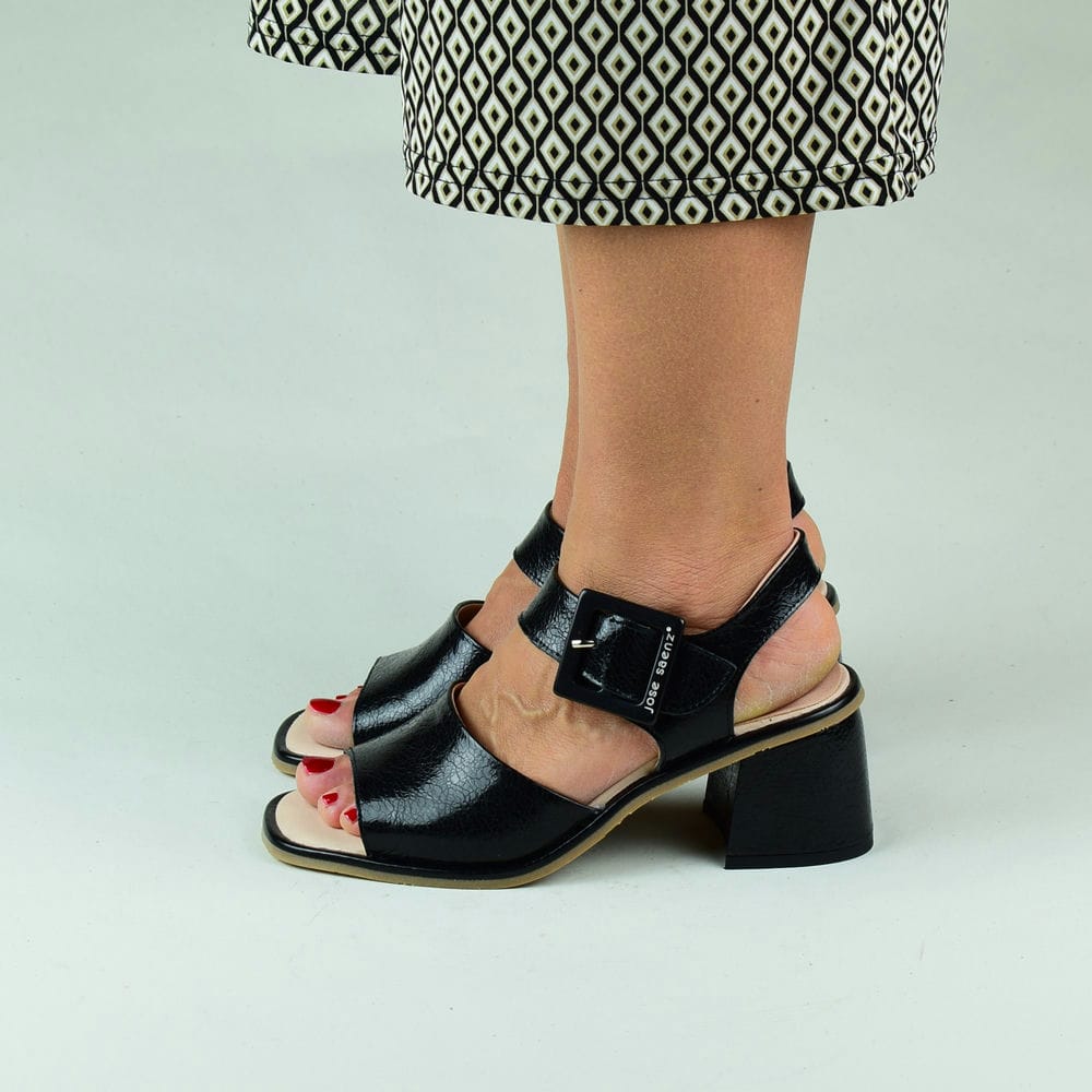 Extra soft patent leather sandals in black with a 4.5cm heel