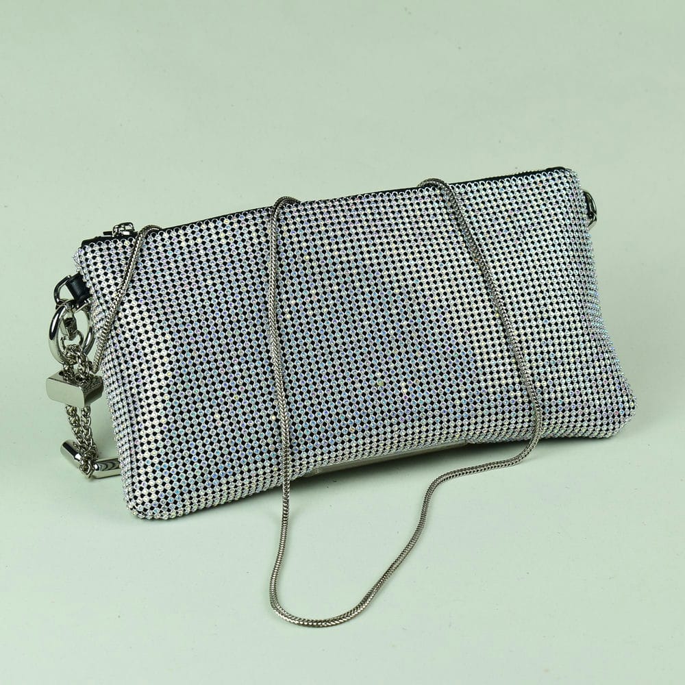 Bag with rhinestones for evening looks in silver (28X15))