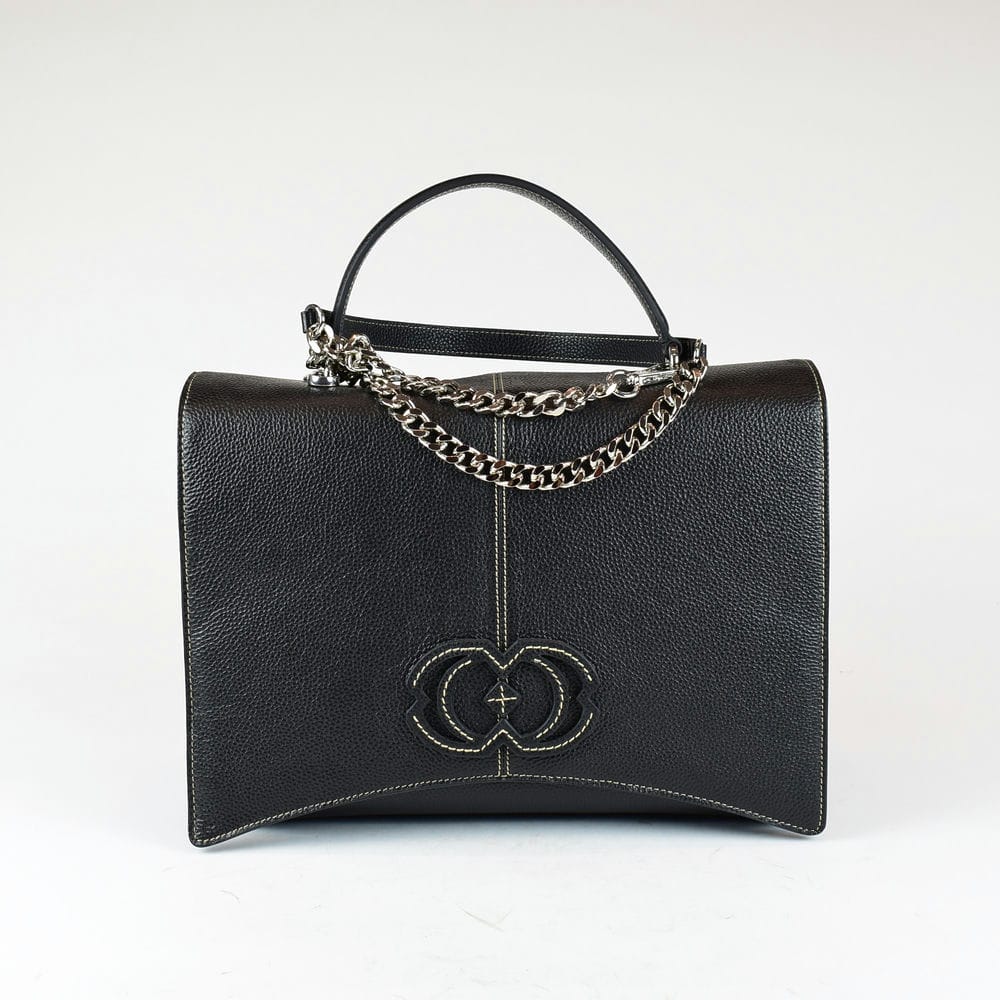 Black leather bag with two handles